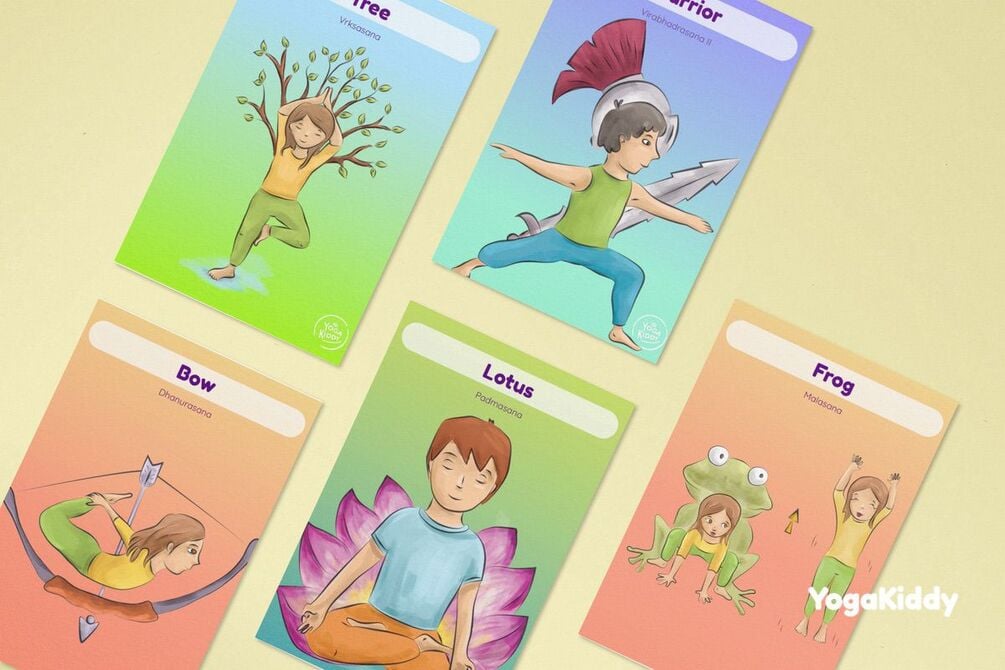For just $19, you'll get 65 beautifully designed and colorful ready to print PDF kids yoga cards, including 45 individual and group posture cards, 10 warm-up cards, and a free pack of 10 additional posture cards. Each card comes with clear posture descriptions on the back, making it easy for even the littlest yogis to follow along.